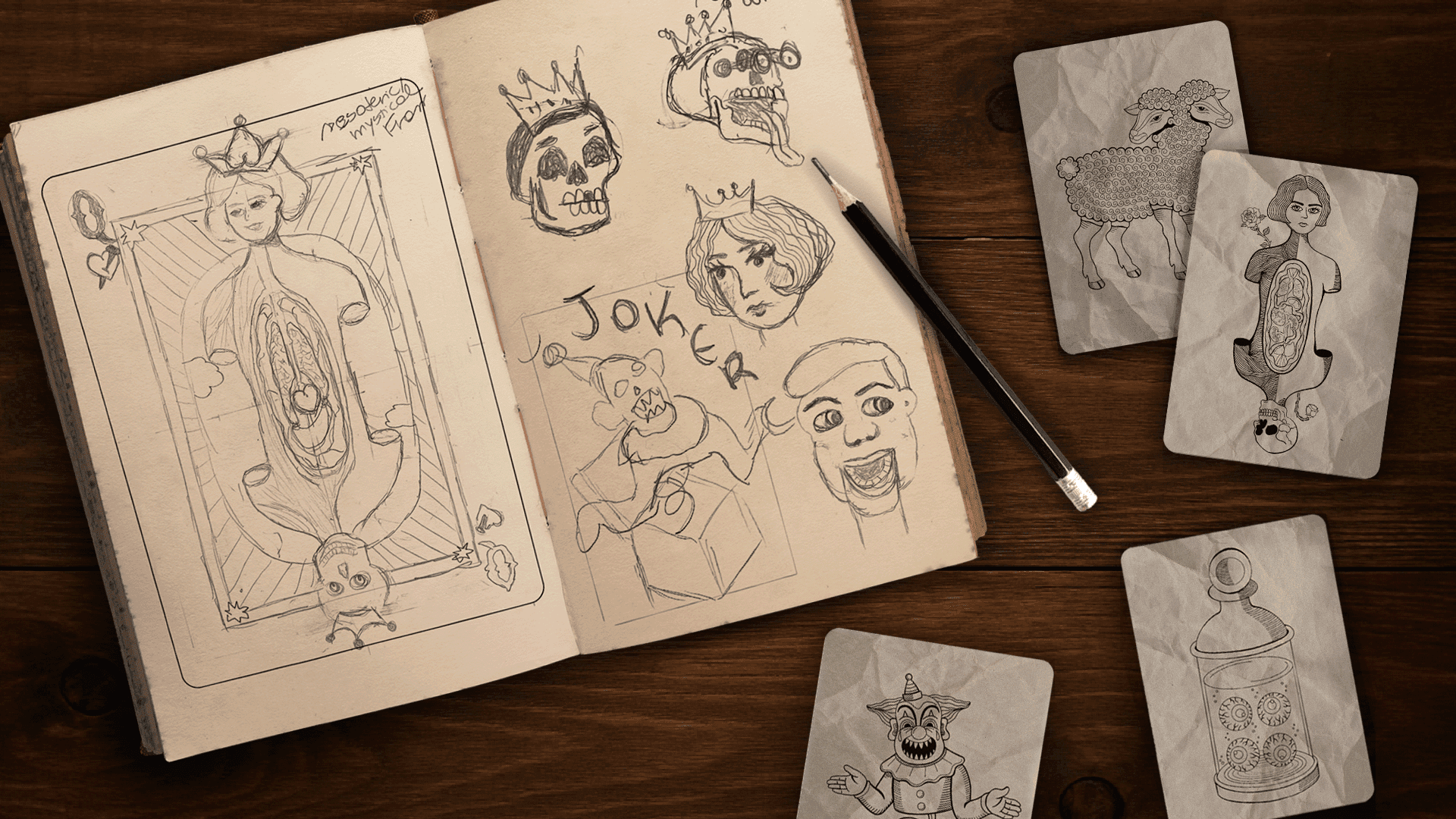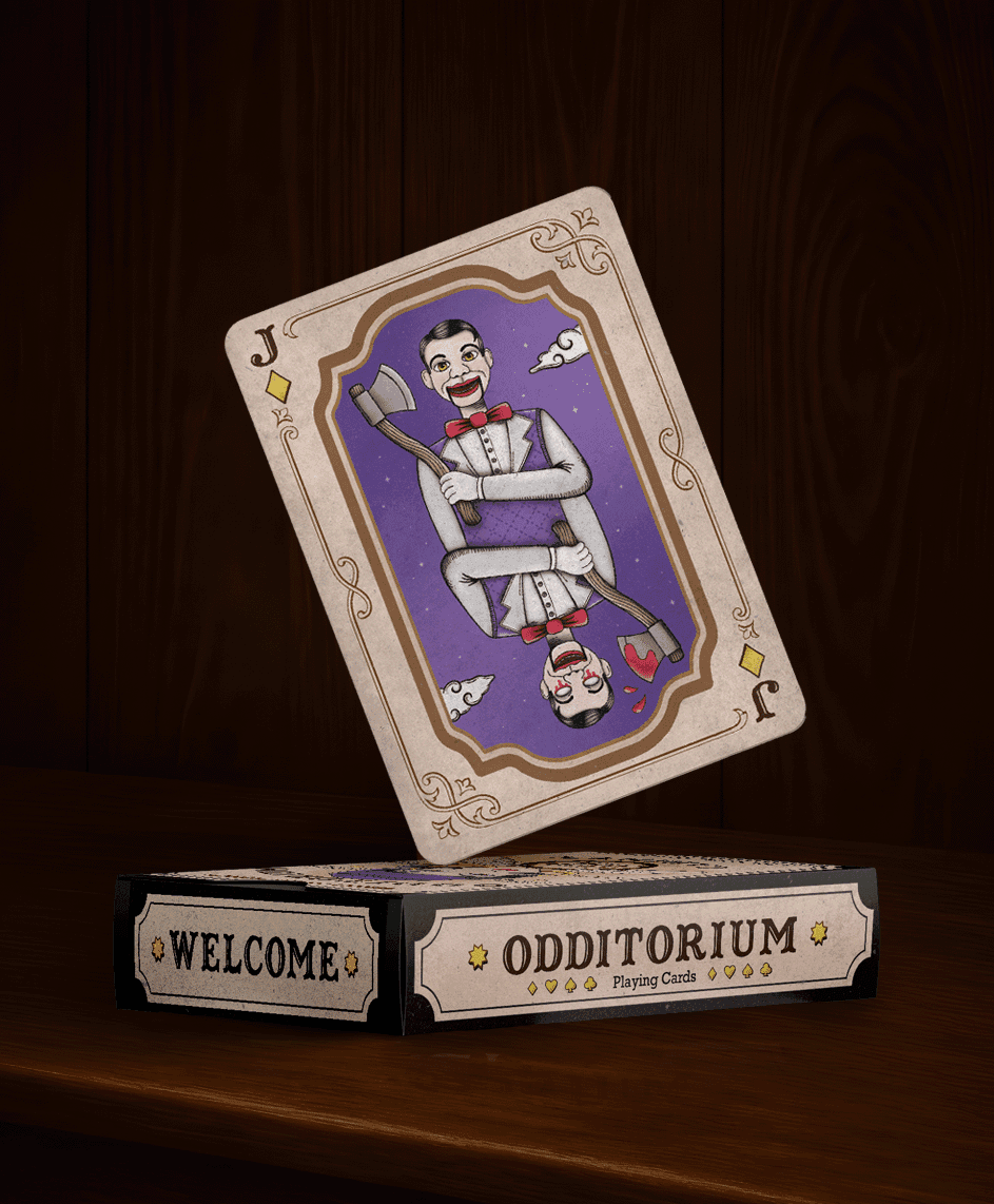 Playing card deck inspired by the mystical and uncanny universe of oddity stores and Victorian typography