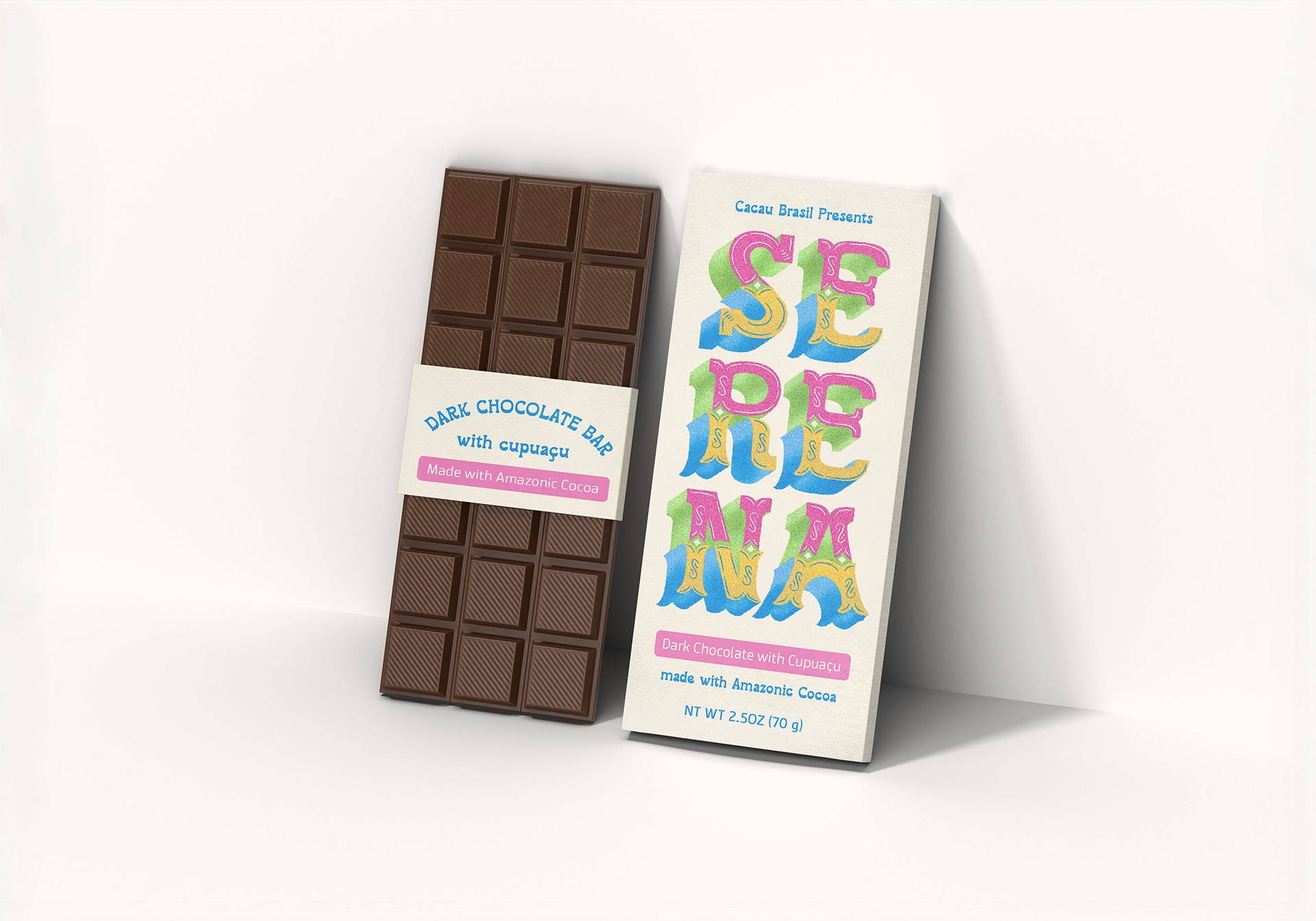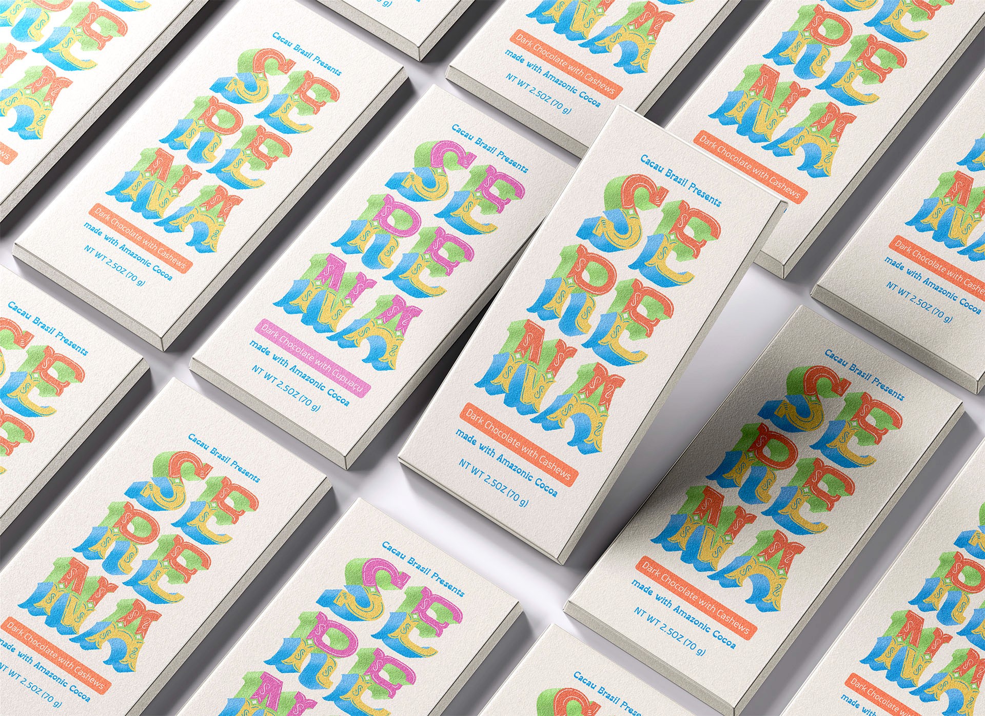 Chocolate bar brand developed to celebrate Brazilian people and culture using typography.